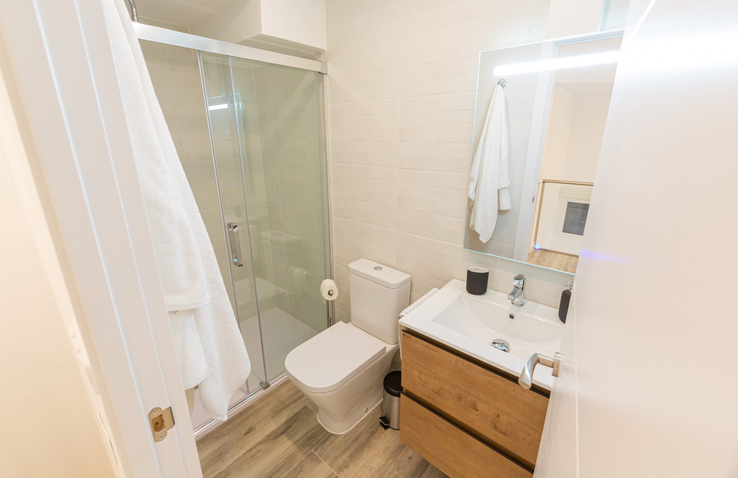 Amplio apartamento de obra nueva, cuenta con capacidad para 4 personas. Dispone de cocina totalmente equipada, habitación con cama doble, salón con sofá cama doble y dos baños completos. Se encuentra situada a sólo 300metros del Retiro. Disfruta de tu estancia en este alojamiento tranquilo y céntrico. Se trata de un bajo a pie de calle, con acceso independiente.