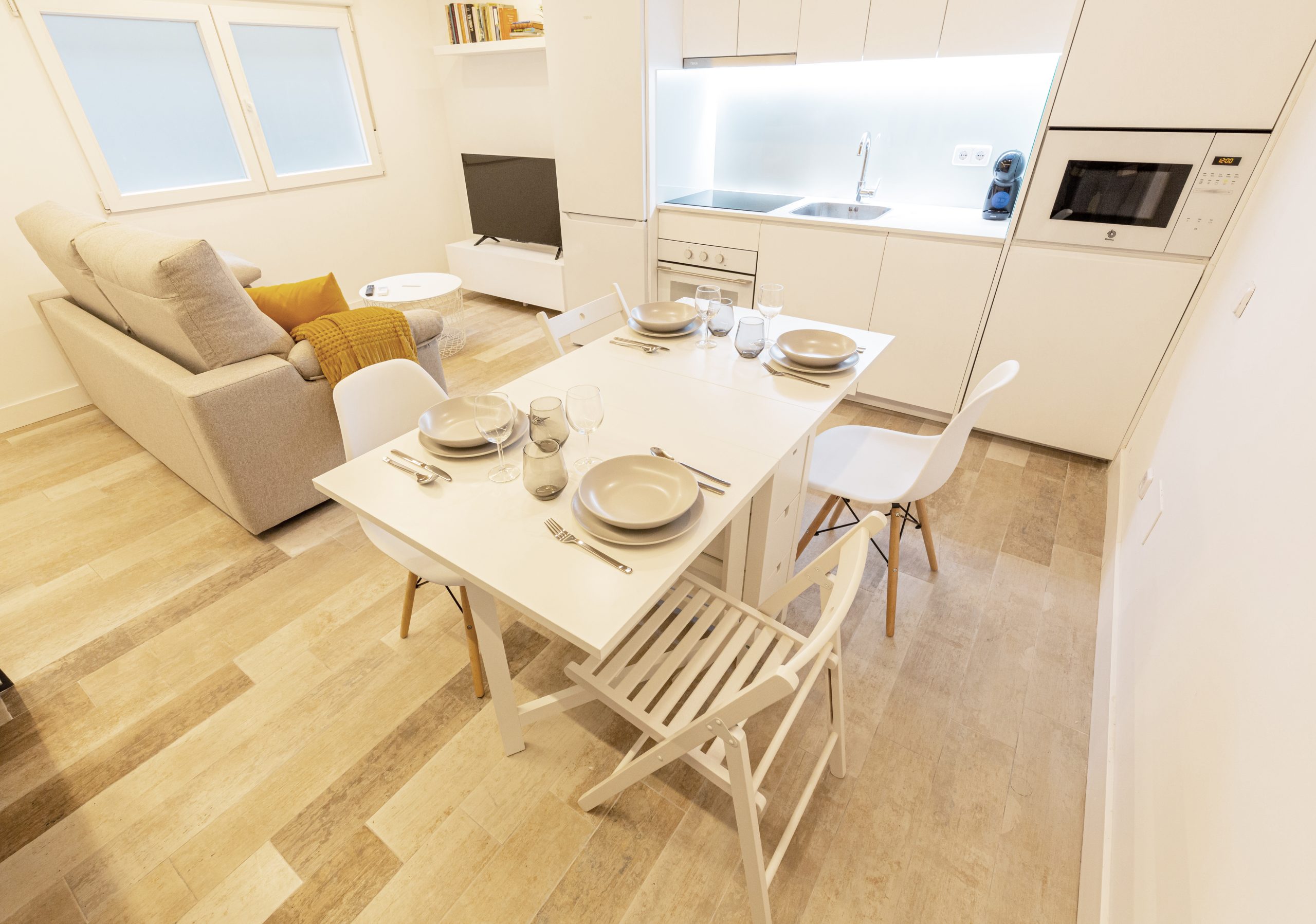 Amplio apartamento de obra nueva, cuenta con capacidad para 4 personas. Dispone de cocina totalmente equipada, habitación con cama doble, salón con sofá cama doble y dos baños completos. Se encuentra situada a sólo 300metros del Retiro. Disfruta de tu estancia en este alojamiento tranquilo y céntrico. Se trata de un bajo a pie de calle, con acceso independiente.