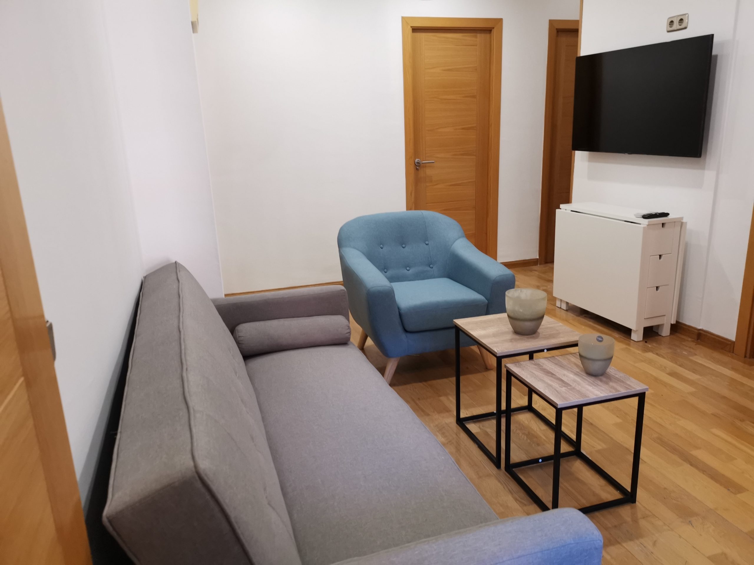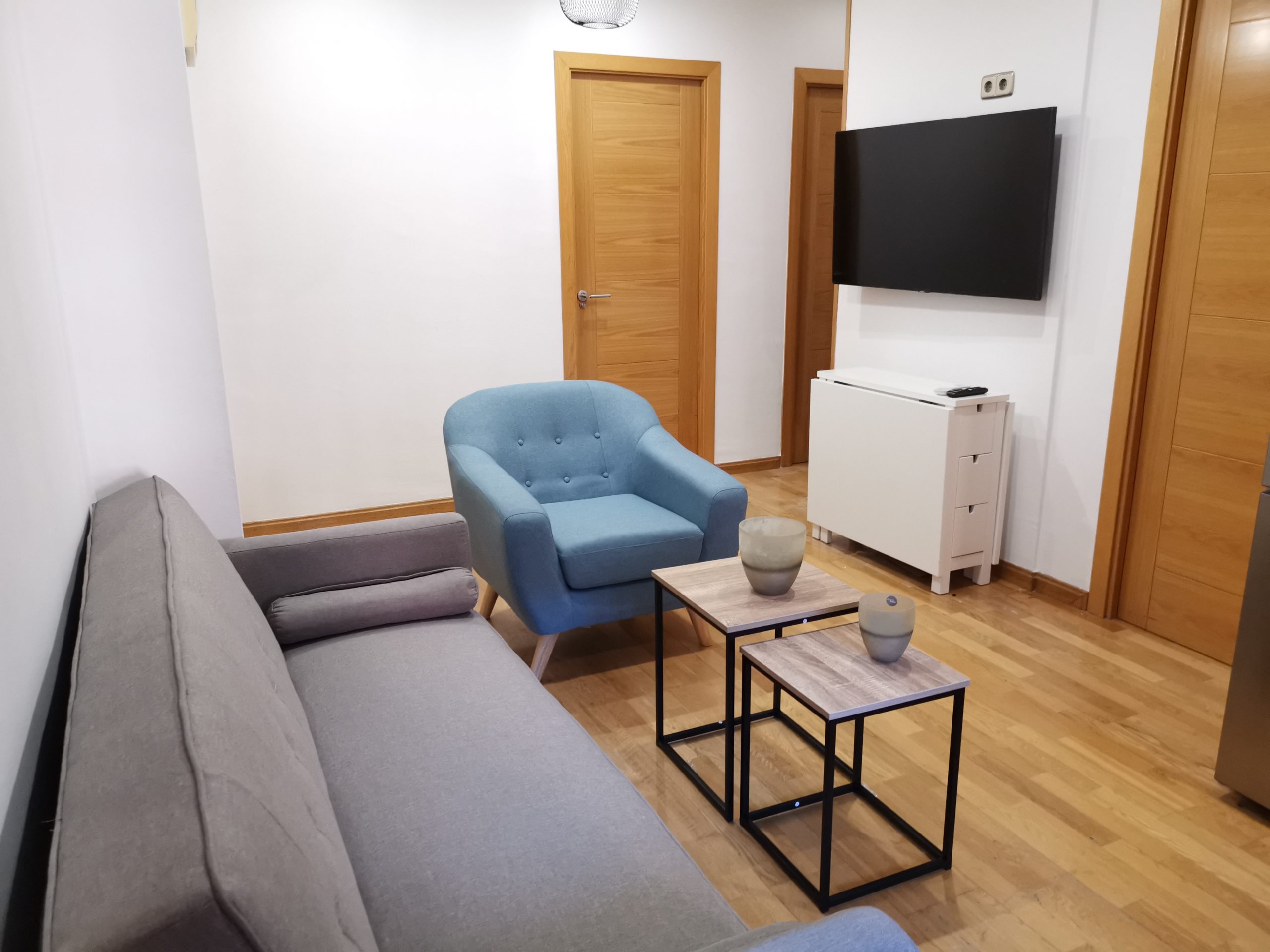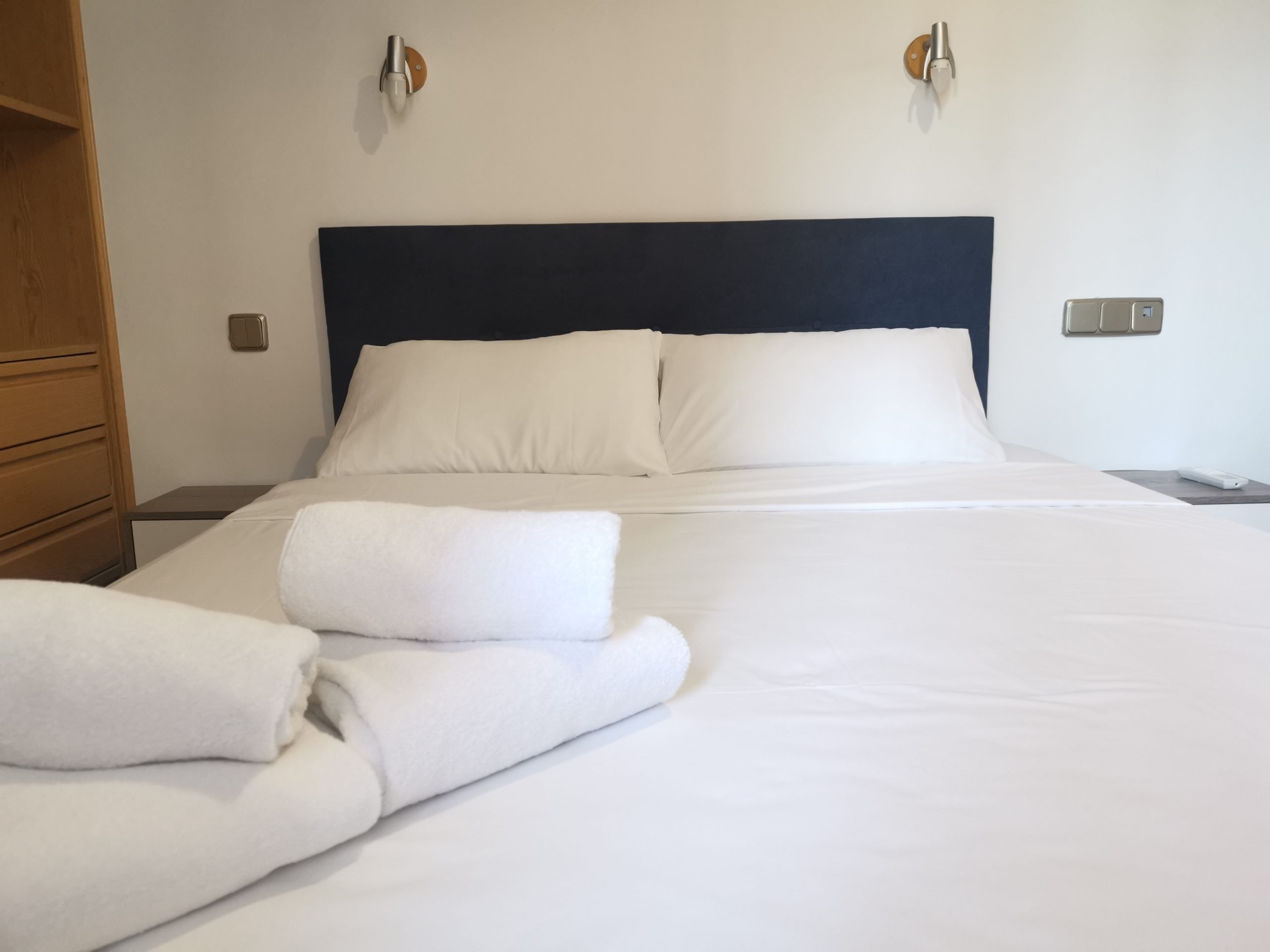 El apartamento consta de 3 habitaciones dobles, dos de ellas con cama de matrimonio y la otra restante con 2 camas individuales, salón, cocina y baño. La capacidad máxima del apartamento es de 6 personas. No cuenta con ascensor.